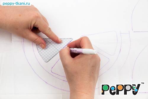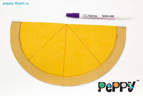2. С помощью самоисчезающего маркера «Gamma», арт.: MKR-001 переведем контуры всех деталей верха на клеевой флизелин ТА, арт.: G-620t по пластиковому шаблону. Деталь «долька» переведем четыре раза.