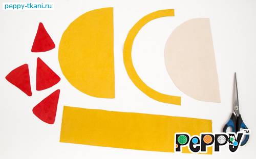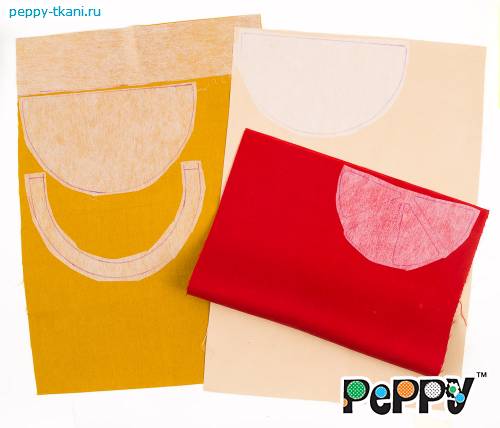 3. Ножницами «Gamma», арт.: G-204 вырежем детали из флизелина с припуском 2 миллиметра и продублируем изнаночную сторону тканей «PEPPY», коллекция QUILTER'S BASIC, арт.: 30898-50: