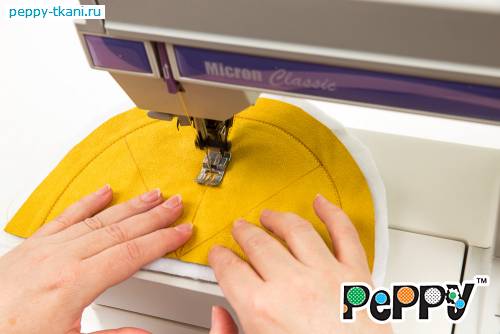 22. Начнем обтачивать заготовку по кругу, оставляя в подкладке незашитый участок для выворачивания длиной 9 сантиметров. Припуск на шов составляет 5мм.