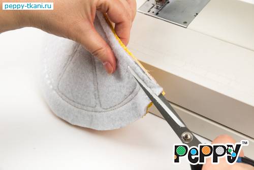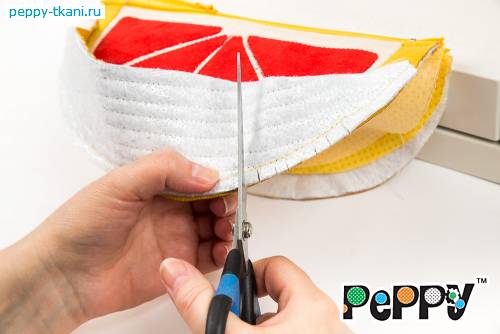 23. Обрежем лишний наполнитель по шву, надсечем закругленные участки припусков и вывернем косметичку через незашитое отверстие в подкладке.