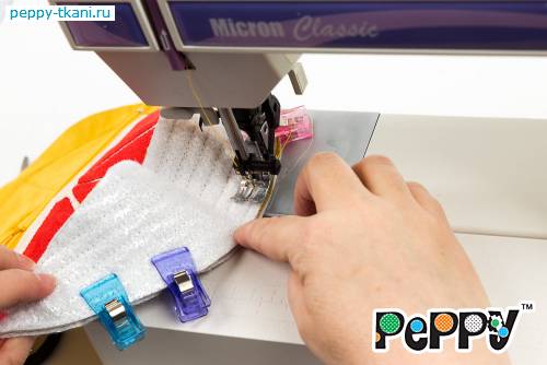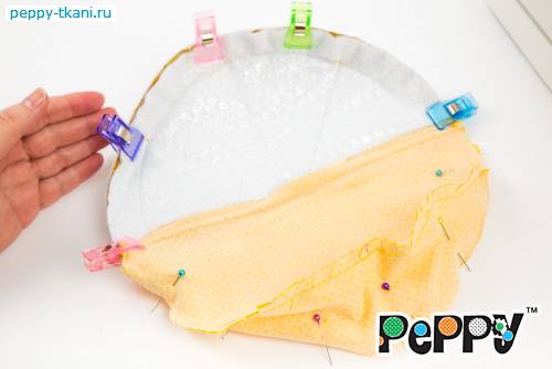 21. Булавками «Gamma», арт.: PH-040 сколем между собой свободные стороны верха и подкладки.