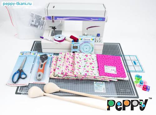 - для внутренней части сумки по одному прямоугольнику из тканей «PEPPY» розового и голубого цветов, а также утеплителя «Warmtex», арт.: INSUL- BRIGHT 45, размером 26х89 сантиметров.