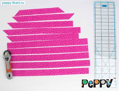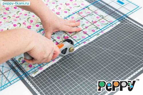 1. С помощью роликового ножа «Gamma», арт.: DKP-045 и линейки для пэчворка «Gamma», арт.: QRL-05 на складном мате «Gamma», арт.: DKF-01 раскроим следующие детали: