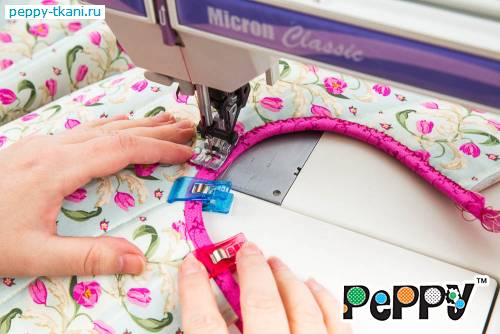 13. Проложим по краю бейки декоративную строчку, постепенно снимая прищепки. Указать какую строчку.