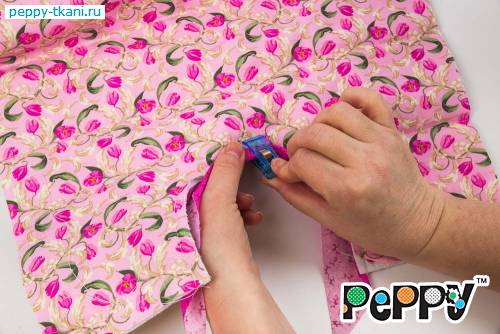 - для внешней части сумки по одному прямоугольнику из тканей «PEPPY» розового и голубого цветов, а также утеплителя «Warmtex», арт.: INSUL- BRIGHT 45, размером 37х79 сантиметров;