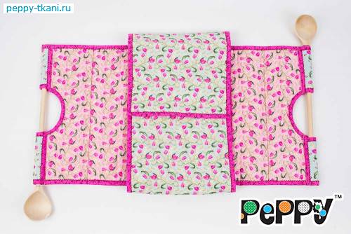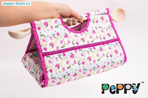 Сохранить тепло и аромат свежевыпеченного пирога поможет такая удобная сумочка с ручками. Только представьте, как вы открываете духовку, вынимаете румяный, умопомрачительно вкусно пахнущий пирог – но до прихода гостей еще остается несколько часов. На помощь придет специальная сумка, которую вы с легкостью сошьете, воспользовавшись подробным мастер-классом. Новая коллекция тканей для пэчворка «Весенний этюд» с яркими тюльпанами придаст сумочке особенно нежный вид. А изюминкой станут декоративные ручки в виде деревянных ложек. Друзья и родные будут в восторге!
