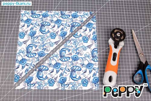 8. Выкраиваем квадрат со стороной 25 см и разрезаем его по диагонали.