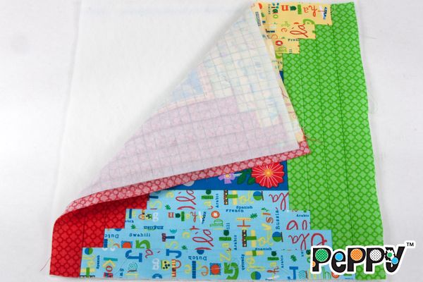 - К основным квадратам размером 31,5 х 31,5 см притачиваем подкладочные квадраты цвета С и D;