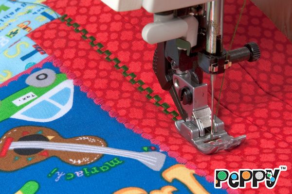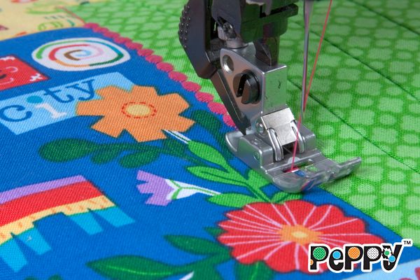 - Окантовочную полоску с лицевой стороны складываем, заправляя припуски во внутрь окантовки и обтачиваем на швейной машинке «Micron classic», выбрав необходимую длину стежка.