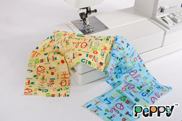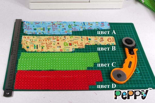 - К окантовочным полоскам притачиваем полосу цвета А и В размером 10 х 90 см;