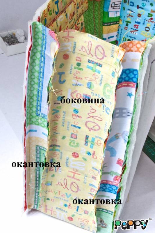 - К боковинам и днищу притачиваем подкладочные заготовки A и B;