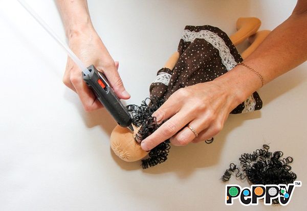 11. При помощи клеевого пистолета Micron GL-02 приклеить пряди волос HobbyBe HAR-1 (инструкция №4).