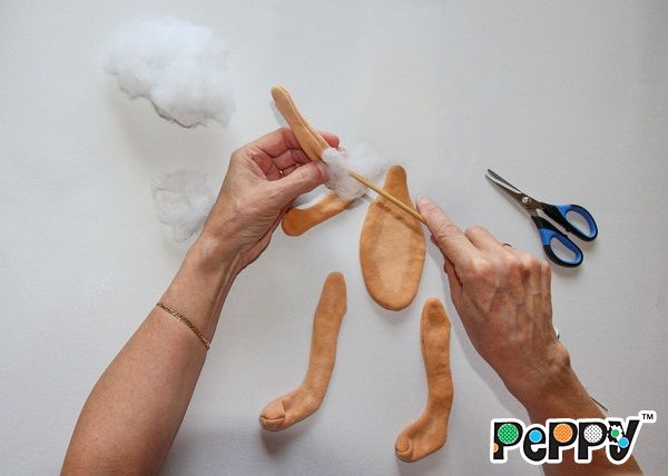 4. Вывернуть детали и набить их синтепухом Gamma довольно плотно. Зашить отверстия на деталях.