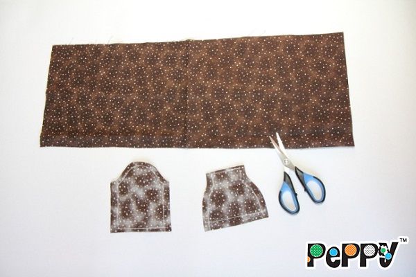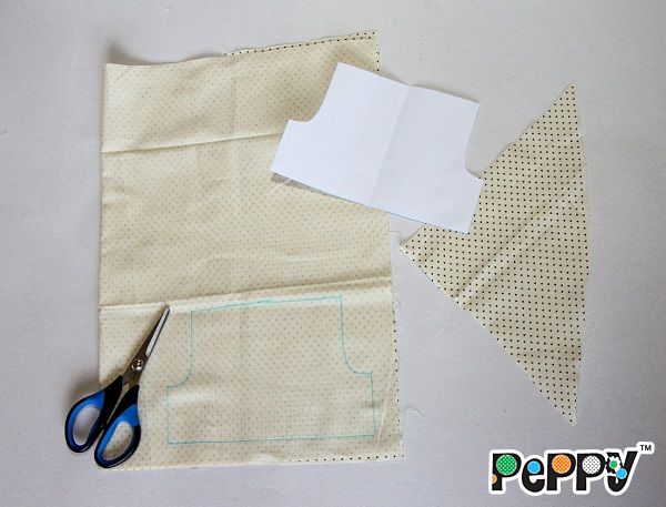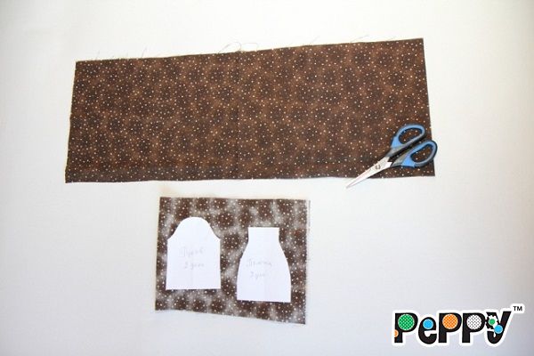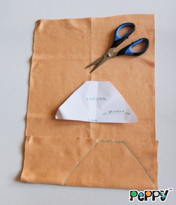 1. Разложить выкройку на сложенную вдвое ткань Peppy. Обвести мелом Gamma TC-110 и вырезать, оставив припуски на швы.