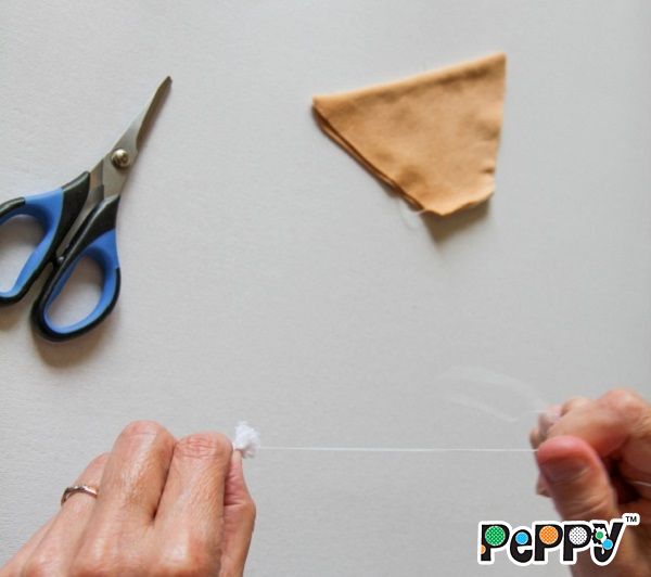 1. По выкройке вырезать 1 деталь головы из кукольного трикотажа Peppy 0146020, прошить на машинке Micron Classic 1035 линию отмеченную пунктиром, присборить с помощью иглы Gamma N-310 и ниток 40/2 Gamma цвет №126 кремовый и стянуть открытый срез.