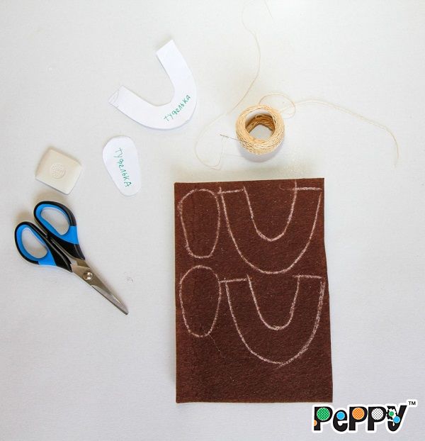 9. Пришить ручки с помощью пуговиц Gamma VS 005 и длинной иглы N-222, используя пряжу Gamma «Ирис», цвет №0811 тёмно-коричневый.