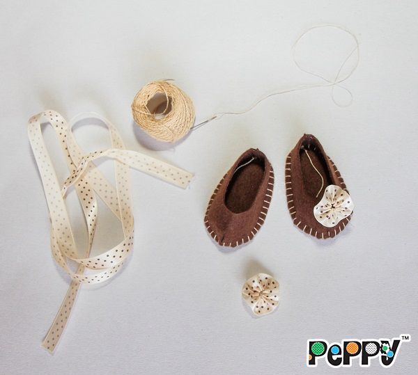 2. Подошву пришить петельным швом к верхней части туфли используя пряжу для вязания Gamma "Ирис", цвет №0001 светло-бежевый.