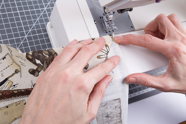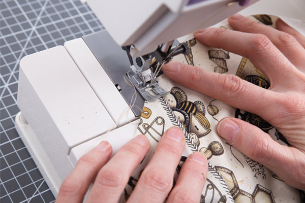 7. Настрачиваем детали аппликаций на карман швом «зигзаг». Все швы выполняем на швейной машине «Micron Classic». Встроенный верхний транспортер ткани обеспечивает равномерную подачу даже самых плотных слоев ткани.