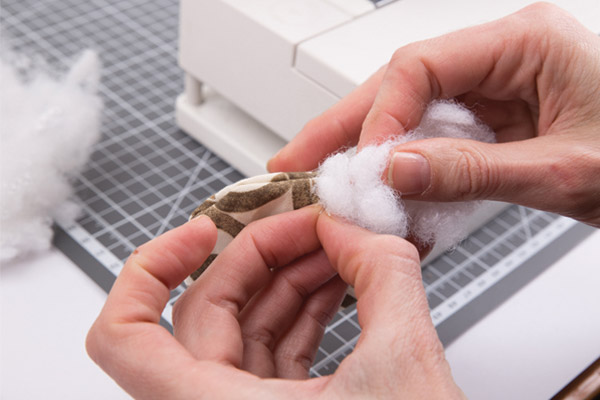 18. Надсекаем припуски и выворачиваем игольницу, наполняем синтетическими шариками «GAMMA» и зашиваем вручную оставшийся участок. Благодаря скрученным спиралью шарикам «GAMMA», набивная деталь становится объемной и упругой.