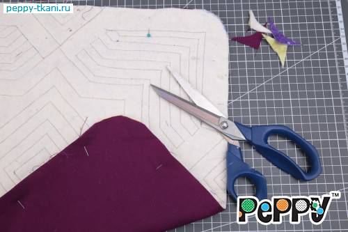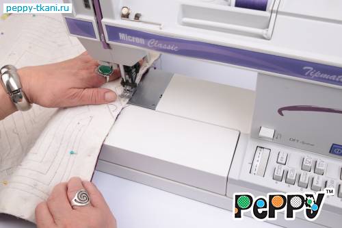 5. Аккуратно проходим закругленные углы. В этих местах длину строчки можно уменьшить до 2, 5 мм. В начале и в конце строчки делаем закрепы (несколько стежков в обратном направлении). Если их не сделать, то при выворачивании изделия швы могут разойтись.