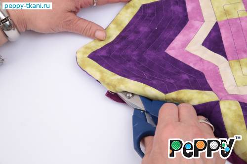 6. Выворачиваем изделие на лицевую сторону. Закругленные углы расправляем с помощью ножниц.