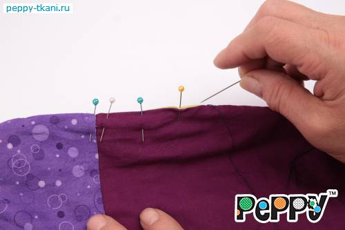 7. Подворачиваем края внутрь отверстия, закалываем булавками «Gamma», арт.: PH-040. Зашиваем отверстие потайным швом.