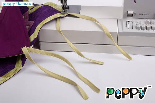 9. Чтобы изделие ровно держалось на стуле и не сползало, можно сделать завязки из однотонной ткани оливкового цвета. Для этого: