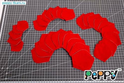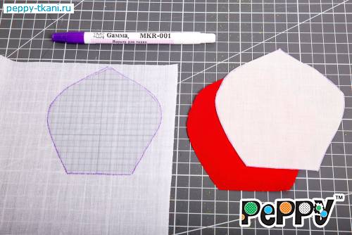 3. По тому же шаблону переведем детали лепестков на белый флизелин «Gamma», арт. G-520с, но без припусков. С помощью утюга укрепим все красные детали флизелином.