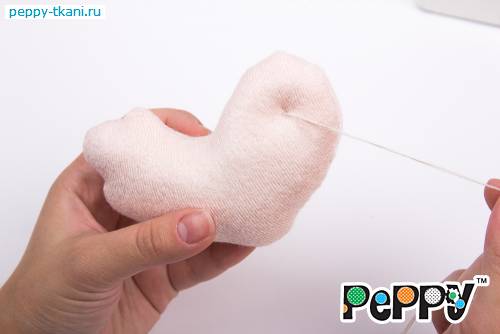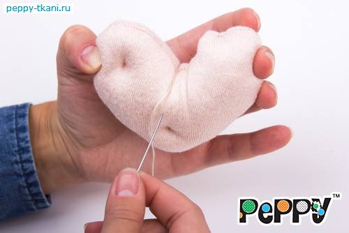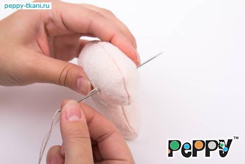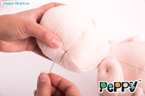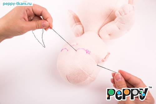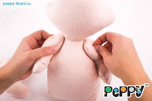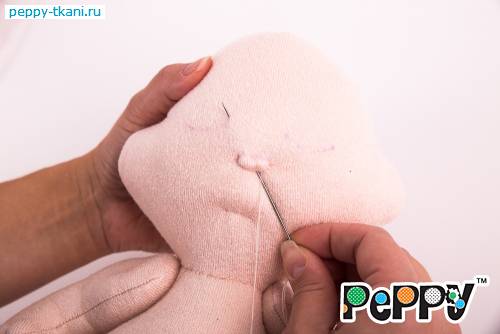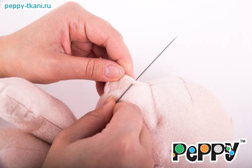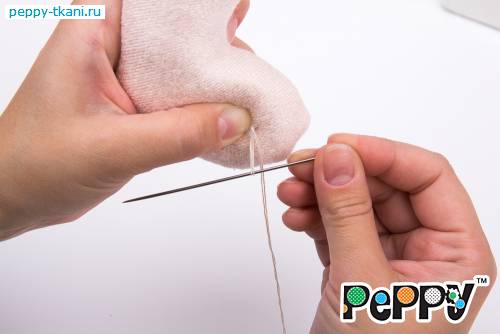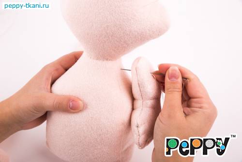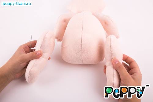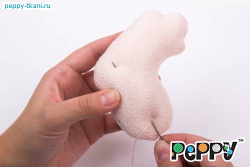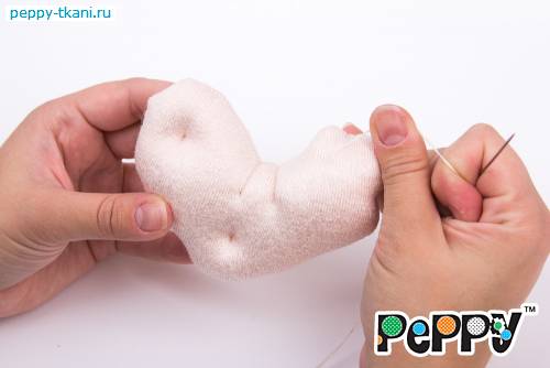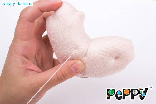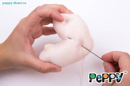 Пришьем одной ниткой сразу две ручки, проколов туловище насквозь.