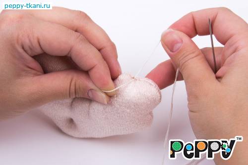 12. Проденем нить через верхний шов и утянем пальчики.