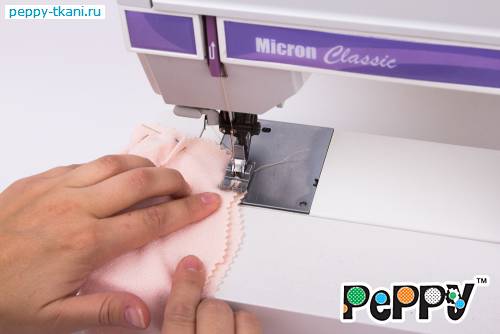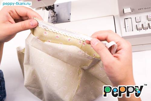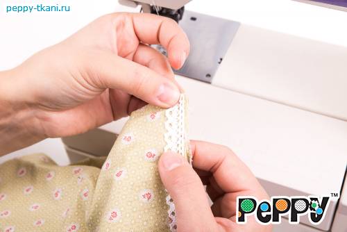 14. Поверх кружева пришьем швом «зиг-заг» эластичную ленту (резинку, арт.: НП).