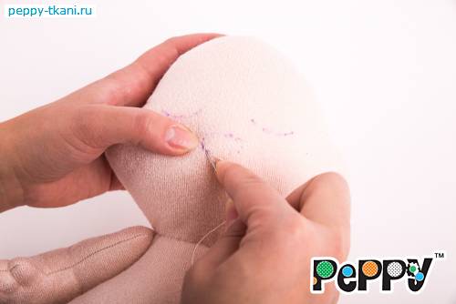 21. Две детали головы стачаем между собой, оставив в нижней части отверстие для выворачивания длиной в четыре сантиметра.