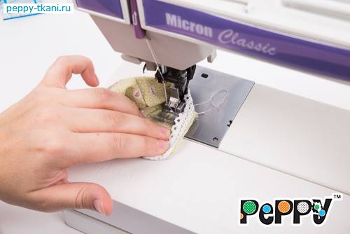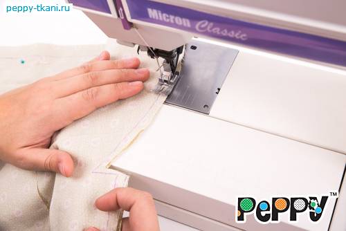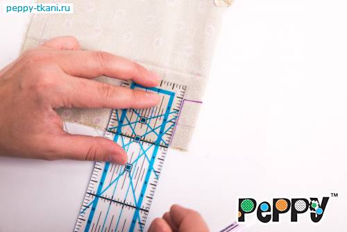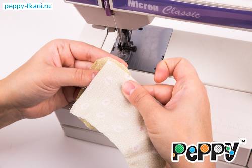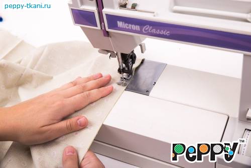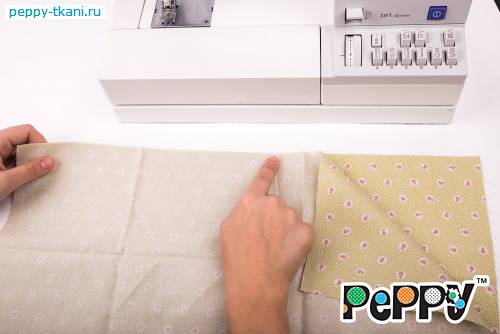 1. Сложим два отреза ткани 50х55 сантиметров «PEPPY» QUILTER'S BASIC, арт. 30900-60, лицевой стороной внутрь. Стачаем по одной стороне.