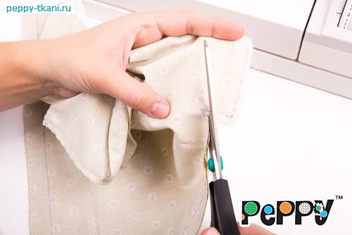 7. Стачаем боковые швы. В углах, под рукавами, сделаем небольшие надрезы, не доходя одного миллиметр до шва.