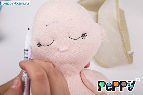 27. Самоисчезающим маркером «Gamma», арт.: MKR-001 наметим на лице куклы расположение глаз и носа. По контуру носа проложим шов «вперед иголка».